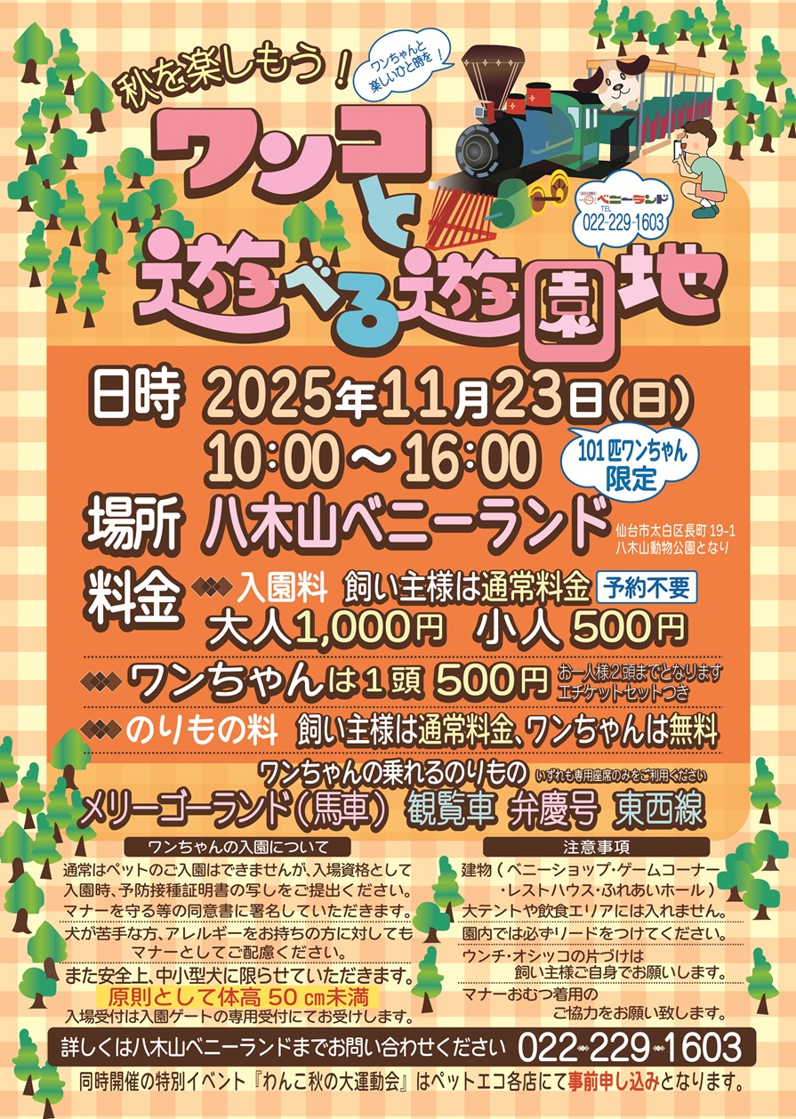 2025年11月23日(日)、「ワンコと遊べる遊園地」を開催します。
