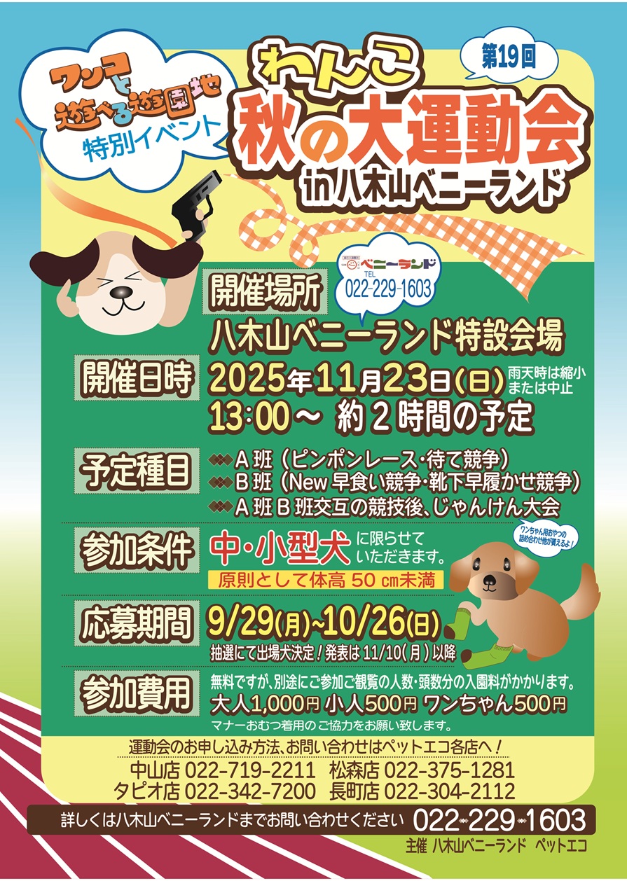 あわせて、特別イベントとして「わんこ秋の大運動会」も同時開催。